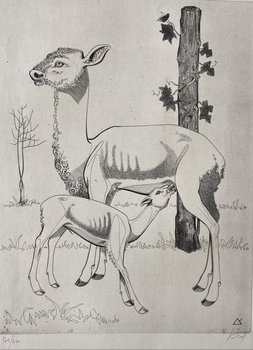 Dinner, Lania z mlodym Original engraving signed and numbered. Limited edition.